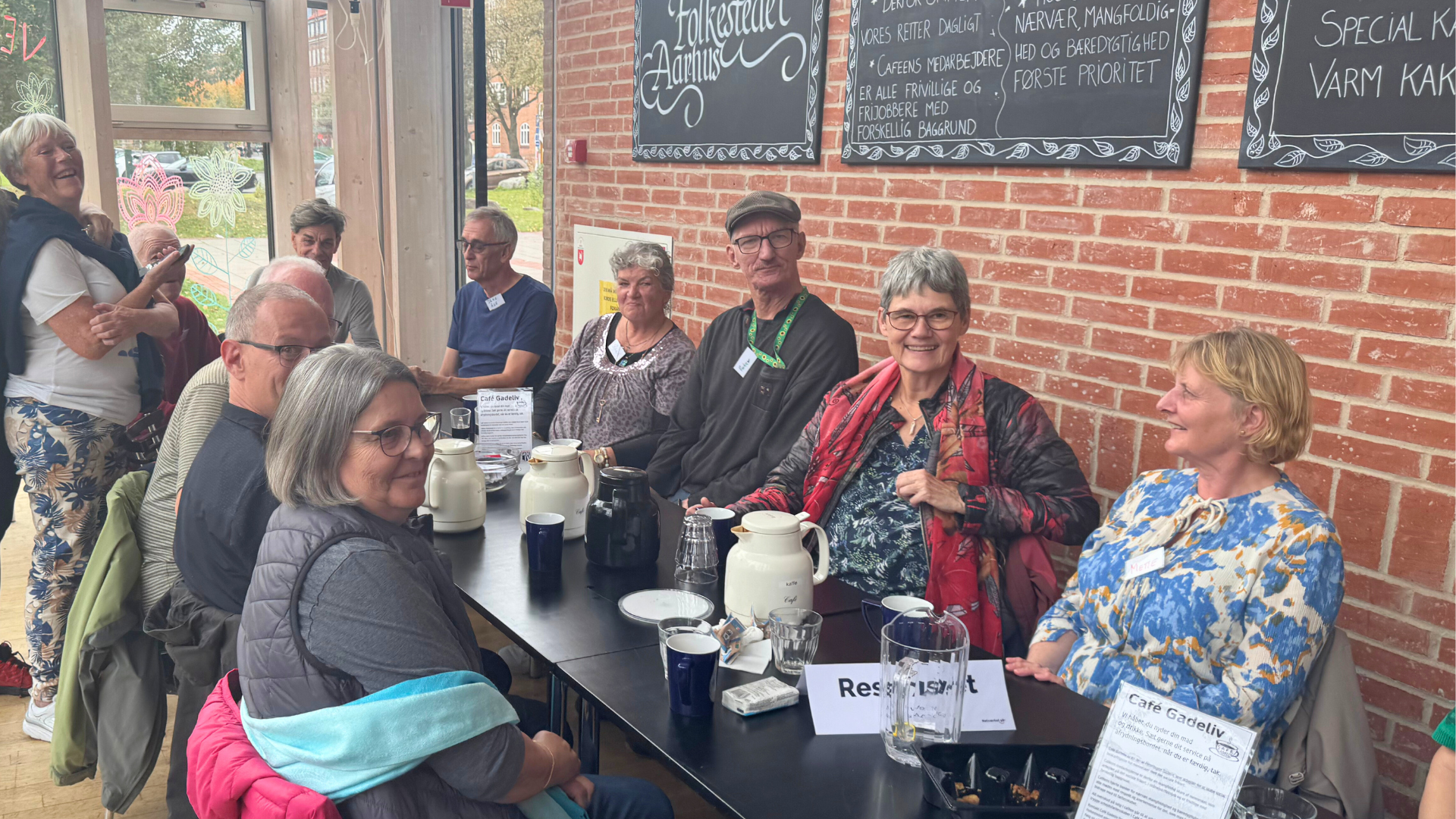 Kom og vær med til vores ugentlige café, hvor du kan nyde en kop kaffe, gode samtaler og høre om de mange muligheder Folkestedet og Aarhus byder på.